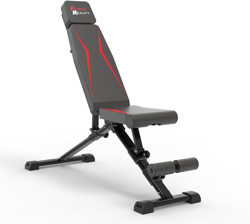 Upgrade your home workouts with the Fitness Reality Adjustable Weight Bench, a heavy-duty bench that supports up to 800 lbs for serious strength training. This foldable bench features 27 quick-adjustable positions for versatile incline, decline, and flat exercises, plus an exclusive adjustable headrest for added comfort and safety. Its space-saving design is ideal for small home gyms, while sturdy construction and thick padding ensure stability and support for every lift. Trust Fitness Reality for quality and performance in your fitness journey.