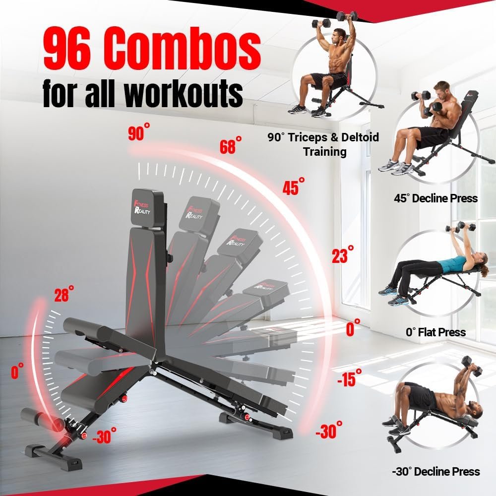 The adjustable bench from Fitness Reality is designed for serious strength training while fitting perfectly into any home gym. With features like an 800 lb capacity steel frame and multi position functionality, this product offers exceptional performance for users at every level.